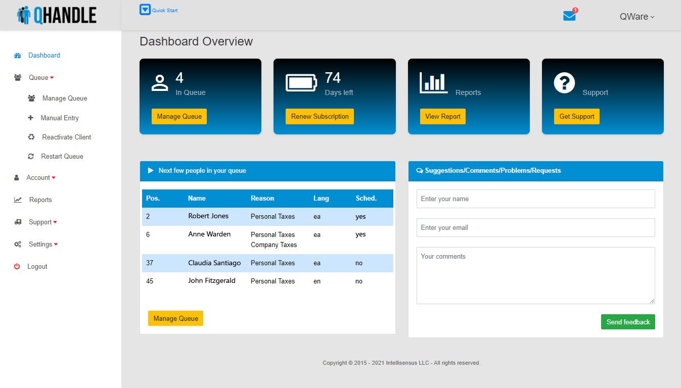 Easy to install and setup. Ready in seconds. The appliance will receive information from your QHANDLE account to display the correct queue on the screen.